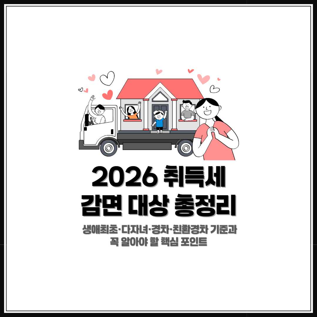 취득세 감면 대상 총정리 (2026년 최신) – 생애최초·다자녀·경차·친환경차 기준과 꼭 알아야 할 핵심 포인트